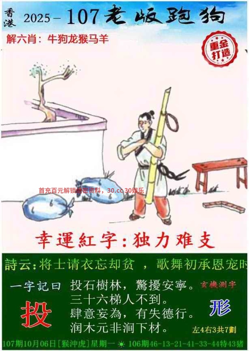 107期:四字平特【沐猴而冠】开:猴34准 |